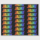 Dieses aufregende, farbenfrohe, lebendige Verpackungspapier-Design zeichnet sich durch den gemeinsamen Vornamen "JAIME" aus, der ein farbenprächtiges Regenbogenspektrum inspiriert Farbmuster aufweist. Der Hintergrund ist schwarz. Aufregende Packpapier wie dieses könnte eine lustige Art sein, ein Geschenk zu verpacken, das jemand namens Jaime gegeben hat. [~Z0000354]