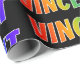 Dieses lustige, spannende, lebendige Verpackungspapier-Design zeichnet sich durch den gemeinsamen Vornamen "VINCENT" aus, der ein farbenprächtiges Regenbogenspektrum wie Farbmuster aufweist. Der Hintergrund ist schwarz. Farbenfrohe Verpackungspapiere wie dieses könnten eine lustige Art sein, ein Geschenk zu verpacken, das jemand namens Vincent gegeben hat. [~Z0000354]