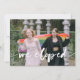 Stolze Ankündigung der Entwicklung personalisiert mit einem Foto. Gay Hochzeitsankündigung mit einem Regenbogenwasser-Waschbecken, Sondertext und Ihrem Hochzeitskennzeichen Foto. LGBT haben wir die Ankündigung mit Ihrem Foto gedruckt. Wir haben ein weiße Kalligraphie-Skript auf Ihrem Foto erstellt. Fügen Sie Ihre Informationen und einen persönlichen Text auf die Rückseite auf einem Regenbogen Aquarell-Waschbecken und weißem Hintergrund.