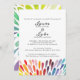Rainbow Watercolor Hochzeitseinladung, entworfen mit einem Regenbogen von Farben in Form von Tropfen mit Aquarellstilisierung. Passen Sie dieses Design mit Ihren Hochzeitsinformationen und jeder beliebigen individuellen Nachricht an, die Sie einschließen möchten! Die Hintergrundfarbe ist Set zu Weiß, Sie können jedoch eine Füllfarbe Ihrer Wahl wählen.