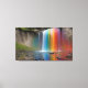 Erfrischender Wasserfall mit Regenbogenfarben, die sich in einen coolen Wasserpool unterhalb des Hotels einführen. Entspannen Sie sich, während die Vision Ihren Raum steigert.