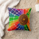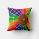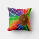 Dieses Kissen hat ein Regenbogengewebe darauf.