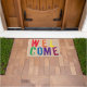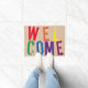 "WELCOME" gedruckt in den Farben des Regenbogens, riesige Buchstaben. Hintergrund hat einen flüssigen Filter, und die Farbe kann nach Ihren Wünschen geändert werden.