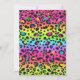Joga-Party Einladung für Mädchen in hübschen Regenbogenfarben und einem lustigen Leopardenmuster.