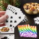 Regenbogenzebrahautdruck. Farbiges Muster. Benutzerdefinierte Wiedergabekarten.