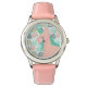 Kinderuhr aus Edelstahl mit rosa Lederarmband