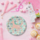 Ein niedliches, lustiges, farbenfrohes, skurriles Design, das Regenbögen, rosa und aquamarine Einhörner zeigt, dieses mystische Fantasietier, das die Menschen über die Jahrhunderte faszinierte. Rainbows und Unicorns Serviertablette, Teller, Flaschenöffner, Lunchboxen, Hundebetten, Backformen und vieles mehr.