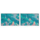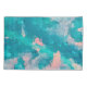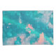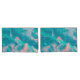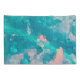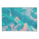 Das abstrakte Kunstwerk von ZoeSPEAK auf diesem Pillowcase-Set stammt von Zoes Originalfoto von Regentropfen auf einem Blatt im Garten. Das Design ist in tropischen Aqua-Blues und Pachelpinken gehalten.