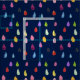 Niedliches, farbenfrohes Design von gemusterten Regentropfen mit einem boho Thema. Kreativ und künstlerisch vor einem marineblauen Hintergrund. Muster Collage Art Rindrop Teardrops.