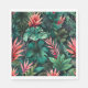 Tauchen Sie ein in die üppige Schönheit des Regenwaldes mit diesem lebendigen Aquarellwerk. Mit exotischen tropischen Blätter in Grün und Rosa vor einem dunklen Hintergrund erweckt es das Wesen der ungezähmten Eleganz der Natur. Ideal, um jedem Raum eine kühne botanische Touch hinzuzufügen.