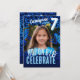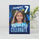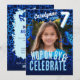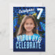 Mach dich bereit, um Spaß zu machen! Diese Geburtstagsparty im tropischen Regenwald lädt zum 7. Geburtstag ein, mit lebendigen blauen Giftfröschen und kühnen Mustern. Passen Sie dieses Design einfach mit Ihrem eigenen Foto, Namen und Details an.