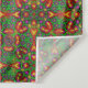 Lebhafte und komplexe Muster bilden ein kaleidoskopisches Design mit symmetrischen Arrangements und lebhaften Farben. Formen spielen mit Grüntönen, Rot und Purpur zusammen und erzeugen einen lebendigen und dynamischen visuellen Effekt.
