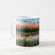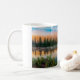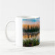 Die Tasse des Kaffees wird mit einem Foto des wunderschönen und berühmten Mount Rainier im Staat von Washington gezeigt. Passen Sie dieses Objekt an oder kaufen Sie, wie es ist. Bild