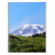 Blick auf den Rainier und die umliegenden grünen Hügel an einem sonnigen Frühlingstag.