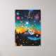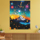 Atemberaubende Malerei des Mount Rainier im Staat Washington mit einem Wirblen, hellen Abend und Glühwürmchen. Original digitale Malerei.