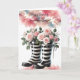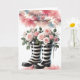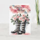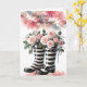 Eine wunderschöne Geburtstagskarte mit einem skurrilen Paar schwarz-weiß gestreifter Stiefel, gefüllt mit weichen rosa Rosen, Swooshes of ombre Farbe betont den Hintergrund. Passen Sie Ihre Wünsche an.