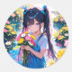 Die Kunst eines niedlichen Mädchens, das einen Blumenstrauß mit bunten Blume in einer sanften Regendusche hält. Eine Touch friedlicher Schönheit.