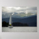 Das stimmungsvolle Rainy Day Sailor Poster ist ein einzigartiges Geschenk für Segler, Boater oder Colorado Liebhaber. Dieser landschaftliche Segeldruck zeigt ein digital gemaltes Foto eines Segelbootes mit einem weißen Segel am Dillon-See in Colorado an einem regnerischen Tag mit einer Bergkette in der Ferne. Der Seemann an Bord trägt einen gelben Regenmantel.