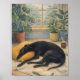 greyhound dog, black dog art, sleeping dog, cozy home decor, rainy day art, houseplants aesthetic, indoor plants, calm atmosphere, peaceful scene, cozy illustration, dog lover gift, relaxing artwork, window rain, hygge style, plant lover art, minimalist cozy, pet artwork, soft textures, serene mood, warm interior