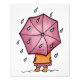 Aus meinem original kalkfarbenen Aquarellbild eines kleinen Mädchens, das in einem Regenmantel und Stiefeln gekleidet ist und einen großen, im Regen stehenden Regenschirm hält.