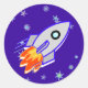 Helles Cartoon-Raketenschiff, das mit Sternen im Hintergrund durch den Weltraum zoomt