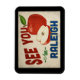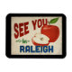 Ein charmanter Raleigh North Carolina Reisewall Magnet mit einem hübschen roten Apfel, zusammen mit einem lustigen Retro-Stil, der sagt: "See you in Raleigh"