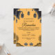Diese Ramadan-Iftar-Einladung zeigt einen reichhaltigen goldenen Hintergrund, der von traditionellen islamischen Mustern und hängenden Laternenillustrationen eingerahmt wird. Das klassische Layout und die warmen Töne schaffen eine einladende Atmosphäre, die den Geist der Zusammengehörigkeit, der Segnungen und der gemeinsamen Momente während des heiligen Monats widerspiegelt.