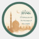 Share a warm Ramadan greeting with this elegant round sticker featuring “Ramadan Kareem” in Arabic, paired with the message “Wishing you all the blessings of this month.” The design blends a gold watercolor masjid silhouette and crescent moon with a rich green geometric border—perfect for sealing gift bags, treat boxes, envelopes, party favors, and Ramadan/Eid packaging with a beautiful, meaningful finish.