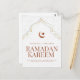 An elegant Ramadan design inspired by Islamic architecture, featuring a refined golden archway, a crescent moon with star, and soft geometric patterns. The clean white and beige palette is enriched with warm reddish-brown typography, highlighting “Ramadan Kareem” and a message of prayer and gratitude. Subtle shadows and balanced composition create a peaceful, spiritual aesthetic that reflects the beauty and meaning of the sacred month.