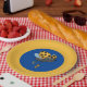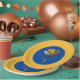 Goldener Ladybug für Ramadan mit fantasievollem, halbmondfarbenem Mond und Stern.