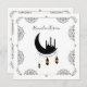 Silhouette für Ramadan mit einer Moschee auf einem Halbmond und hängenden Laternen. Blumengrenze. Die Hintergrundfarbe kann geändert werden.