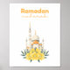 Celebrate Ramadan with this beautiful mosque illustration wall print featuring yellow flowers and “Ramadan mubarak” typography. Perfect for home décor, gift-giving, or festive Ramadan ambiance. High-quality printable art for Muslim celebrations and spiritual inspiration.