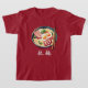 Das T-Shirt des Kindes in einer leckeren Schüssel mit Regennudeln mit Eiern und geschnitten Schweinefleisch, begleitet von Stäbchen, und der Titel im Kanji