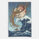 Diese kühne Illustration verbindet traditionelle japanische Wellenaesthetik mit moderner Food-Pop-Art. Eine wilde, animierte Ramen-Schüssel bricht durch eine tosende Meereswelle, schleudert Nudeln wie wildes Haar umher, während die Toppings in dramatischer Bewegung nach außen explodieren. Die Eier, das Fleisch und die Garnituren werden zu ausdrucksstarken Elementen, die dem Ramen eine mythische, fast kriegerische Persönlichkeit verleihen.