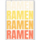 Einfaches, farbiges Textdesign mit "Ramen, Ramen, Ramen, Ramen" Text in beige, gelb, orange und rot