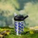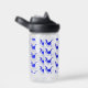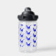 Eine donnernde Herde von überwältigenden blauen Dinosauriern rennen über diese Wasserflasche.