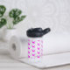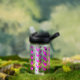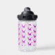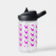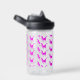 Eine donnernde Herde rampierender rosa Dinosaurier rennen über diese Wasserflasche.
