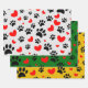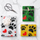 Random Cartoon Dog Paw Prints and Red Hearts Geschenkpapier Set