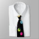 Eine Krawatte mit vielen zufälligen bunten Punkten auf schwarzem Hintergrund. Das Bild ist groß, sodass es vergrößert und verkleinert werden kann und das Bild verschoben werden kann, um den perfekten Ort zu finden. ;) Also, wäre das als Geschenkidee nicht die Kirsche auf dem Outfit Ihres Lieblings-Typ, oder vielleicht zum Vater?