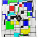 Geometrische Formen, die durch das Werk von Piet Mondrian inspiriert werden. Unregelmäßige Linien, die Quadrate und Rechtecke bilden. Digitale Kunst im Retrostil dekorativ, kundenspezifisch, um dieses Produkt personalisiert zu machen.