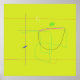 Abstrakte Linien und Formen verteilen sich auf einen limitierten grünen Hintergrund, was ein Gefühl von Zufälligkeit und Spontaneität schafft. Dünne, mehrfarbige Striche schneiden sich und kurvieren und bilden geometrische und gefrierförmige Muster.