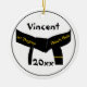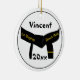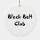 Personalisieren Sie das einzigartige Black Belt Round Ornament mit dem Namen Ihres Kampfkünstlers und das laufende Jahr, um an einen 1. Dan-Test oder eine Prüfung der Werbeaktion zu erinnern. Dieses individuell gestaltete Weihnachtsschmuck verfügt über ein digital erweitertes Foto eines schwarzen Kampfkunstgürtels mit einem goldenen Bar oder Streifen auf der Vorderseite mit den Worten Black Belt Club auf der Rückseite.