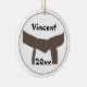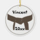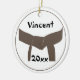 Passen Sie das einzigartige Runde-Ornament der Kampfkünste mit dem Namen Ihres Kampfkünstlers und des laufenden Jahres an. Erstellen Sie ein individuelles Kampfkunst-Gratulationsgeschenk zum Gedenken an einen Werbeaktion-Test oder eine Klausur. Dieser eine Art Weihnachtsschmuck für Sportarten ist mit einem Bräunengürtel verbunden in einem Knoten mit weißem Hintergrund.