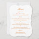 Elegante Hochzeitsmenükarten mit Stanze für anspruchsvolle Sommergartenempfänge. Mit einer einzigartigen gebogenen Silhouette und warmer Sonnenuntergangstypografie ist dieses botanische Menü perfekt für die romantische Fine-Art-Braut. Seine skulpturale Form fügt Ihrem Tischsetting ein luxuriöses taktiles Element hinzu, ohne von Ihrem Blumenschmuck abzulenken. Styling-Tipps: Platzieren Sie es auf einem Salbeigrünen Platzset oder paaren Sie es mit einem einzelnen getrockneten Ranunculus-Stiel.