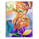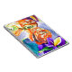 Ein originelles Aquarellbild mit bunten Gelb- und Orangenranunkulus Frühlingsblumen und lila Iris-Blume. Dieses farbenfrohe und lebhafte Blumendesign stammt aus einem originellen Gemälde. Das originelle und wunderschöne, orange und lila botanische Design würde jede Umgebung beleben.