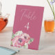 Ranunculus Wedding Tischnummer auf rosa Sockelschild