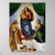 Ein ikonisches Gemälde des Renaissancemeisters Raphael, das die Madonna mit dem Säugling Jesus darstellt und von Saint Sixtus und Saint Barbara flankiert wird, darunter Kirschen.
