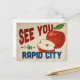 Eine bezaubernde Rapid City South Dakota Vintage Reise-Postkarte mit einem schönen roten Apfel, zusammen mit lustigen Retro-Text, der sagt: "See you in Rapid City"