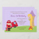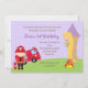 Niedliche Rapunzel & Feuerwehrmann Geburtstagseinladungen mit lila Polka Dot und Turm.