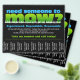 Augenfänger Flyer, um Ihnen zu helfen, Arbeit zu finden und zusätzliches Geld in der Rasenpflege zu verdienen. Kühne, helle Briefe, die auf einzigartige Weise Aufmerksamkeit erregen: "Braucht jemand zum Mähen?" Passen Sie den Text in dieser Vorlage an, um ihn an Ihre spezifischen Bedürfnisse anzupassen. Schneiden Sie zwischen den Zahlen, die die Leute nehmen und anrufen können, nach Belieben. Hängen Sie diesen Flyer in den Bereichen Geschäfte wie Delis, Bibliotheken, Supermärkte, Parks, Pizzerias etc. Dies ist die Saison, um wirklich Ihr Geschäft zu fördern!